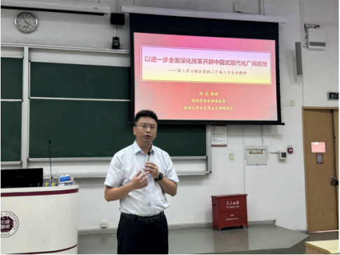 After the orientation ceremony, Dean Liu Zhi delivered the "First Lesson in Ideological and Political Education" to all faculty and students, themed "Further Deepening Reform to Broaden the Prospects of Chinese-Style Modernization — In-Depth Study and Understanding of the Spirit of the 20th CPC Central Committee's Third Plenary Session." Dean Liu Zhi conveyed the key spirit and essence of the meeting with precision and clarity. He analyzed several relationships that need to be understood to grasp the core message of the session and encouraged students to set clear goals for each stage of their lives. He emphasized that life's value begins with dreams and is achieved through action. He urged students to align themselves with the high-level development of the University and School, seize the opportunities of the era, and create new prospects in a changing world by actively participating in reform practices.