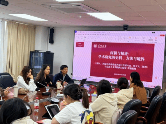 李教授结合自身研究经验,着重强调史料挖掘与文献研究的基础性与重要性。他指出,马克思主义理论研究离不开扎实的史料支撑,文献梳理更是学术创新的前提。“做学术就要坐得住‘冷板凳’,既要广泛搜集、深入挖掘,更要反复甄别、深刻思考,才能从海量史料中提炼真知。”李教授勉励同学们,身处数字化资源丰富的新时代,更要善用各类数据库、文献平台,既要拓宽史料搜集的广度,也要挖掘文献研究的深度,让扎实的史料功底成为学术道路上最坚实的支撑。