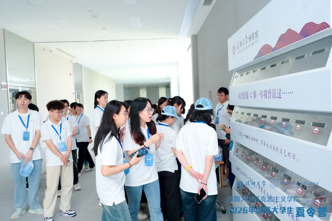 紧接着,营员们分为四组开展破冰活动,在互动中增进了解、凝聚共识,快速融入夏令营集体。活动中,营员们通过与深圳大学相关的知识问答、获取定制书签等周边纪念品,进一步认识深圳大学、了解深圳大学。同时,营员们在深圳大学博物馆“时光胶囊”收集平台,写下致未来自己的留言,定格在深圳大学的青春记忆。